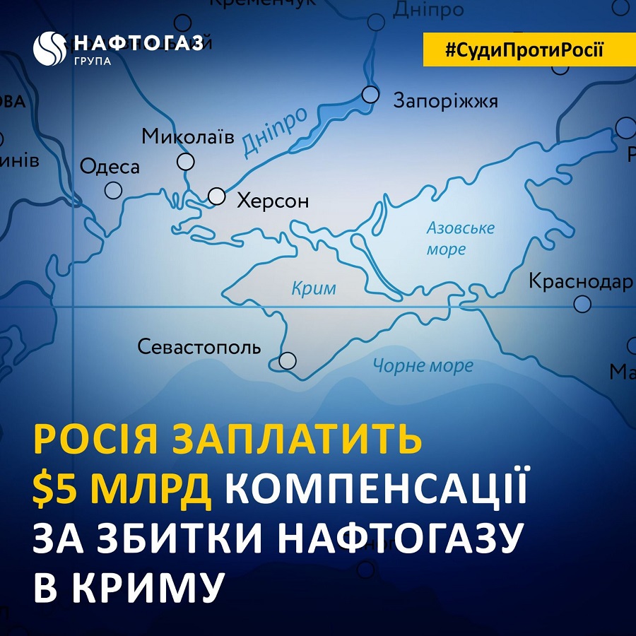 Суд встановив, що сума компенсації повинна дорівнювати справедливій ринковій вартості активів “Нафтогазу” в Криму до моменту їхньої експропріації, зазначається в повідомленні “Нафтогазу”. Попри наполягання Росії на тому, що “Нафтогаз” не має права на будь-яку компенсацію за експропріацію його активів, Арбітражний трибунал не погодився з таким твердженням.
