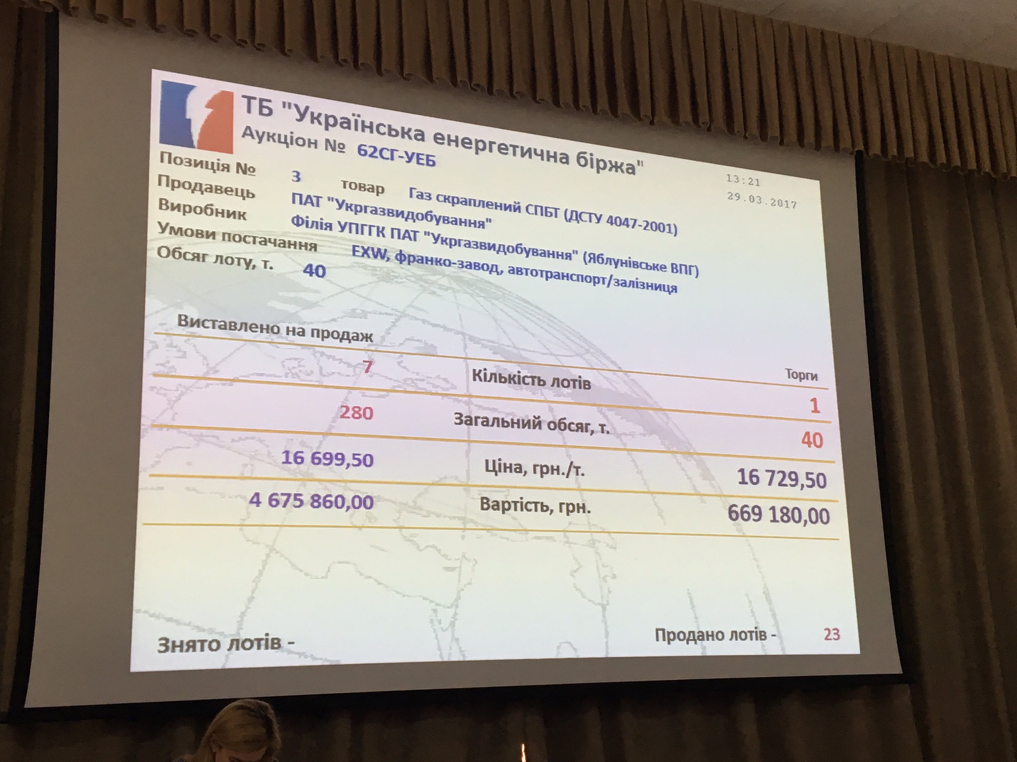 29 марта ПАО «Укргаздобыча» на площадке «Украинской энергетической биржи» провела коммерческий аукцион по продаже сжиженного газа собственного производства.