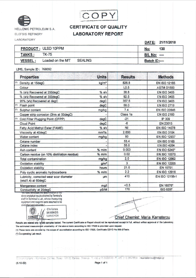По данным НефтеРынка в январе-ноябре 2018 года через морской порт «Южный» в Украину было импортировано 294,1 тыс. т нефтепродуктов. В 2017 году – 300,5 тыс. т, 2016 году – 344,8 тыс. т. Услугами перевалки пользовались : «ВОГ Трейд», «Евростандарт», «Маддокс Украина», «Петрол Трейд Юг», «Альянс Энерго Трейд», «Арров стар трейдинг», «Люкс краина» и другие. Одной из последних поставок на термнилал был авиакеросин и греческое дизтопливо производства Hellenic Petroleum.