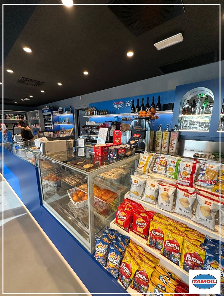 Також в Tamoil MyCafé є куточок з автомобільними аксесуарами та мастилами для автомобілів та мотоциклів.