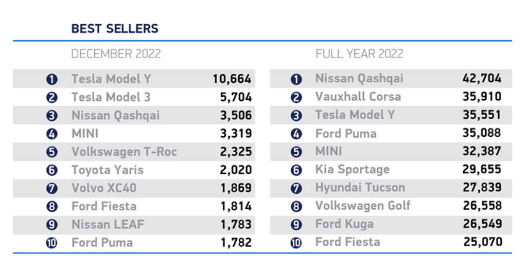 У грудні частка чистих електрокарів (BEV) зросла до рекордного показника – 32,9% від обсягу продажів нових авто, а за підсумками всього 2022 року становила 16,6%. Електромобілі в Британії вперше випередили дизельні моделі за популярністю. Тим часом частка гібридів, що заряджаються від електромережі (PHEV), за підсумками 2022-го скоротилася до 6,3%. Загалом на електромобілі (BEV та PHEV) минулого року припадало 22,9% продажів нових авто, що є рекордно високим показником для країни.