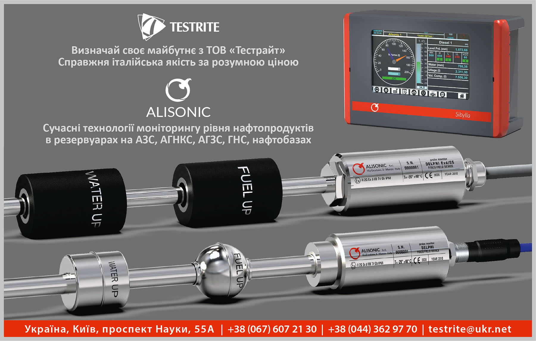 Testrite является официальным представителем итальянского производителя Alisonic в Украине. Компания импортирует и устанавливает уровнемеры под этим брендом, а также выполняет весь спектр сервисных и монтажных работ. По словам Гладкова, обустройство одной АЗС вместе с работой в среднем стоит €4,7 тыс. Речь идет о станции с четырьмя резервуарами для топлива, один из которых - под LPG.