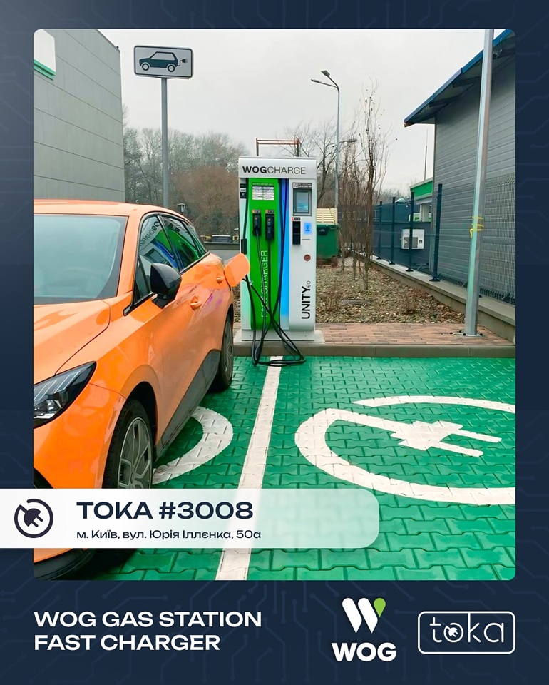 Компанія TOKA встановила зарядну станцію на заправній станції WOG в Києві. Про це TOKA повідомила на своїй сторінці у FaceBook.