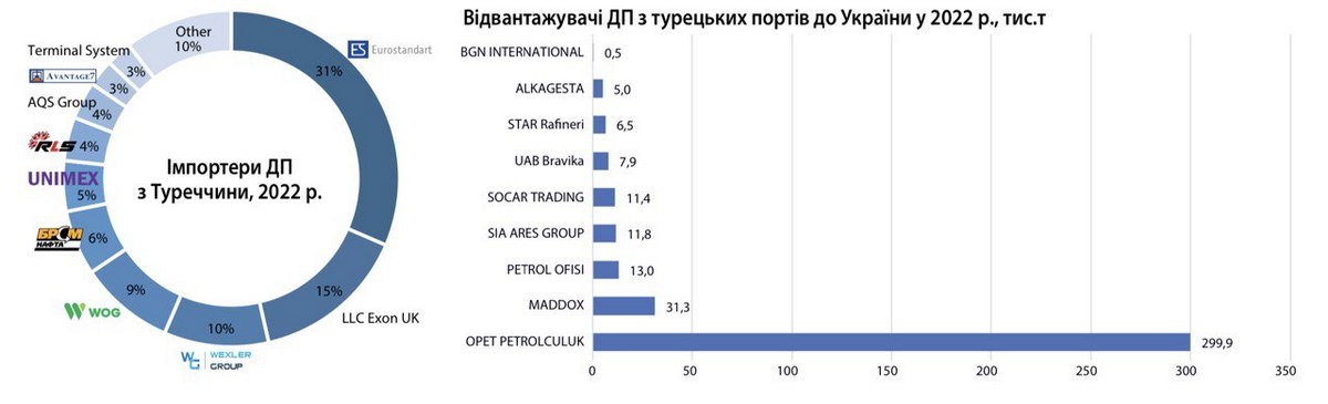 За даними НафтоРинку в 2022 році до України поступило з Туреччини 387,4 тис. т дизпального. Найбільшим відвантажувачем за підсумками року стала турецька OPET PETROLCULUK, найбільший імпортер в Україні – «Євростандарт».