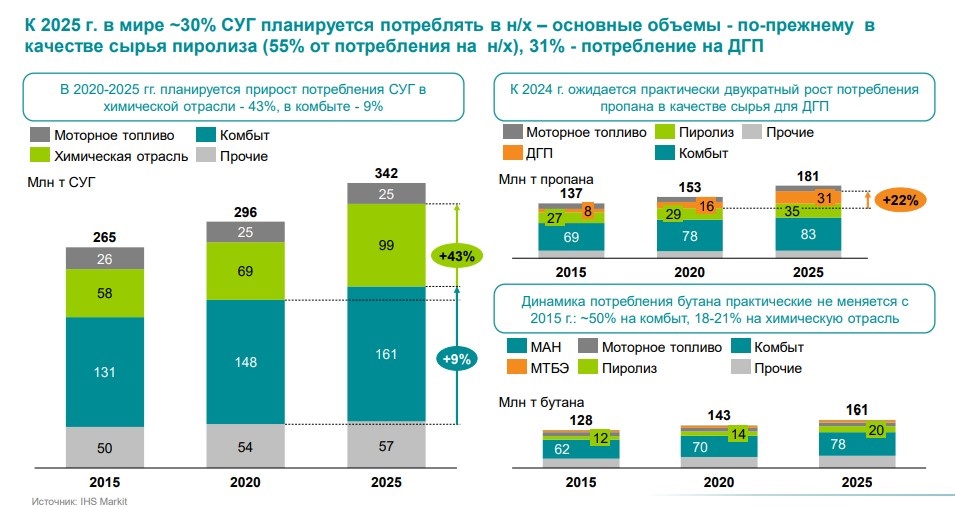 В мире наблюдается тренд увеличения потребления ПБА, как сырья для нефтехимии. По словам Станислава Батраченко, в мире строится около 25 нефтехимических заводов. Горизонт строительства этих проектов 2030 год. Переработка сжиженных газов объясняется более экологичным использованием газов при производстве пластика, и доходах от переработки.