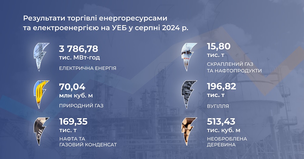 «За їх результатами реалізовано 3786,78 тис. МВт.г електроенергії, 169,35 тис. тонн нафти та газового конденсату, 15,80 тис. тонн скрапленого газу та нафтопродуктів, 70,04 млн куб. м природного газу, 196,82 тис. т. вугілля», — зазначається у повідомленні.