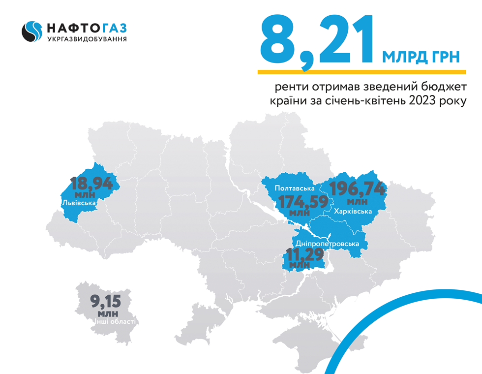 Із цієї суми 5%, або 410,71 млн грн, надійде до бюджетів місцевого і обласного рівнів в 11-ти регіонах, на території яких компанія здійснює видобування вуглеводнів.