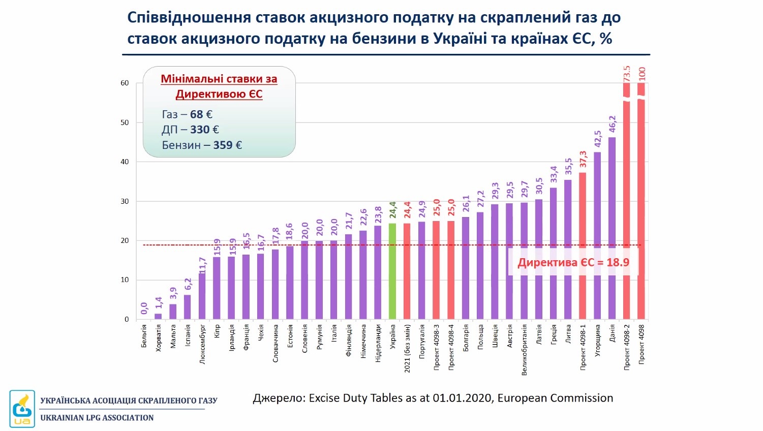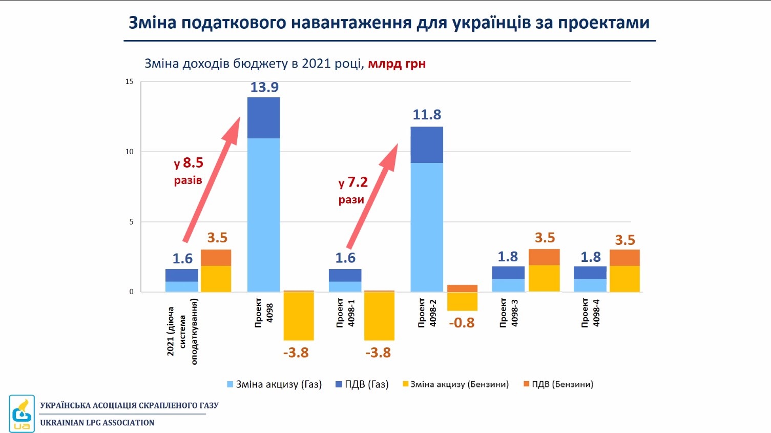 По части налоговой политики, в виду недавних обращений народных депутатов в Верховной Раде, в УАСГ напомнили о своей позиции – поддержке изменения акцизных ставок на нефтепродукты предусмотренных законопроектом 4098-3 – «величина акциза на LPG не более 25% от ставки для бензина».
