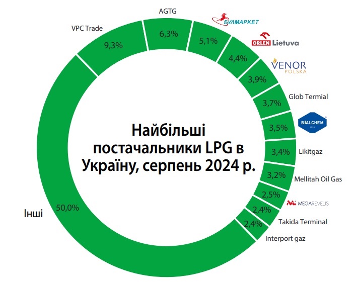 У січні-серпні поточного року до України було ввезено з-за кордону 627,7 тис. т LPG, що на 1,2% більше, ніж за 8 місяців 2023 р.