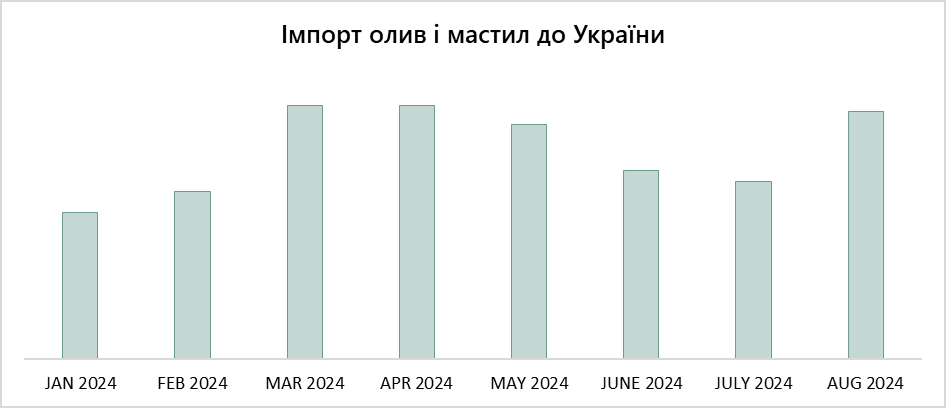 Україна за підсумками серпня 2024 р. збільшила імпорт олив і мастил на 40,0% порівняно з минулим місяцем, до найвищого показника з квітня 2024 р. Про це йдеться у випуску НафтоРинок Monthly fuels&LPG за вересень 2024 року.