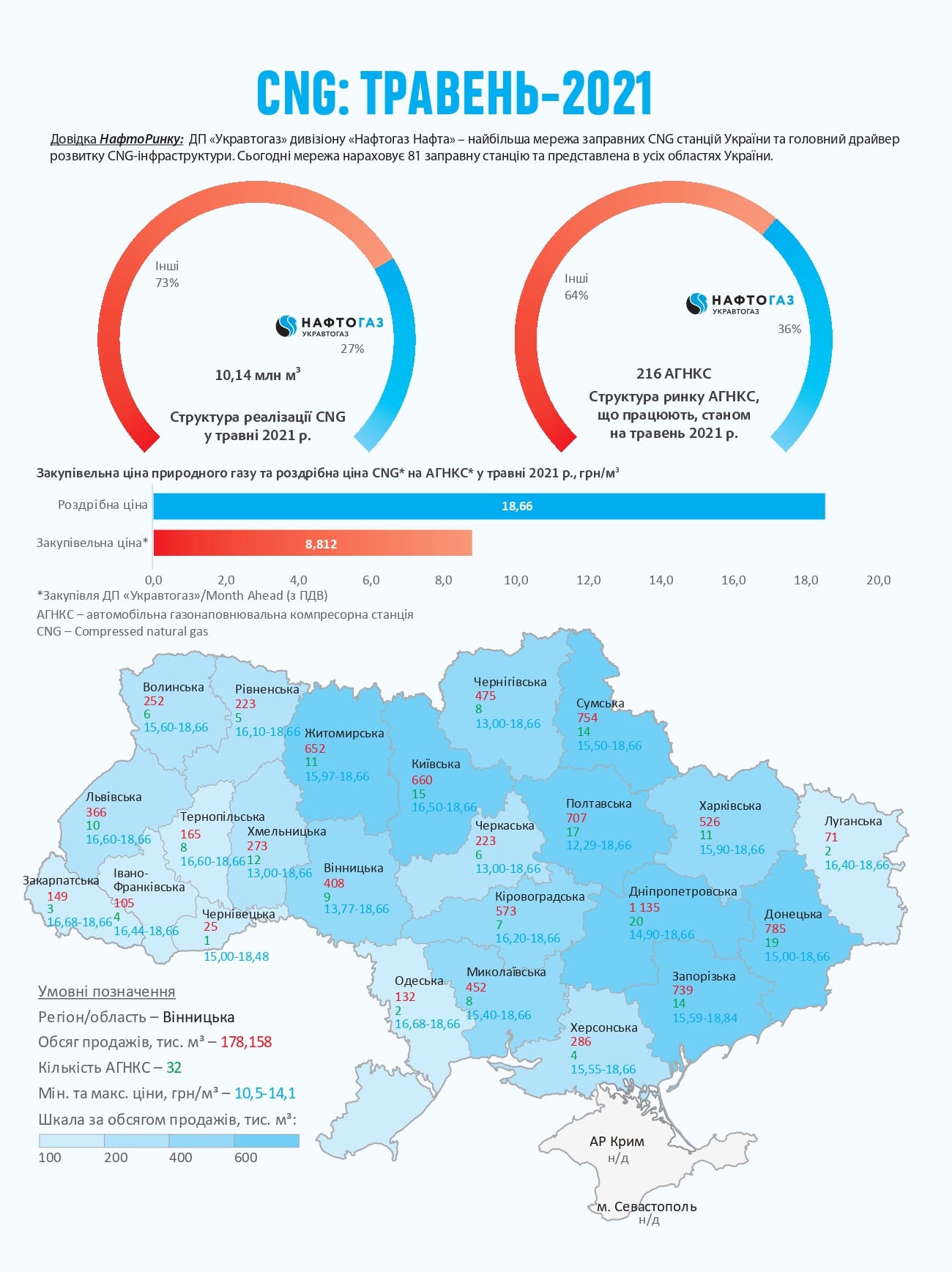 В июне 2021 ДП «Укравтогаз» НАК «Нафтогаз Украины» реализовало 2,7 млн куб. м сжатого природного газа (CNG), что на 300 тыс. куб. м или 9,8% меньше аналогичного периода прошлого года. Об этом сообщили в компании.