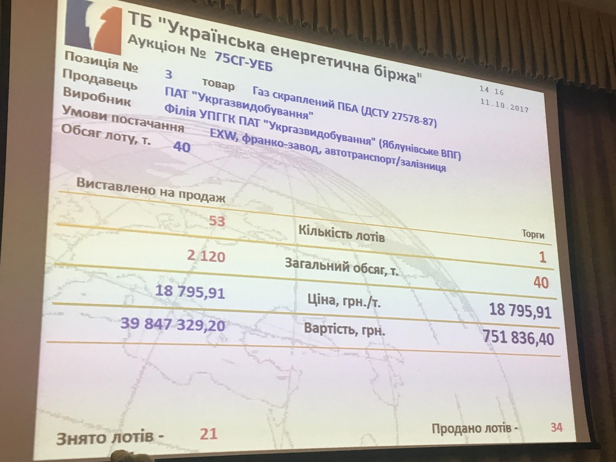 11 октября ПАО «Укргаздобыча» на площадке «Украинской энергетической биржи» провела коммерческий аукцион по продаже сжиженного газа собственного производства.