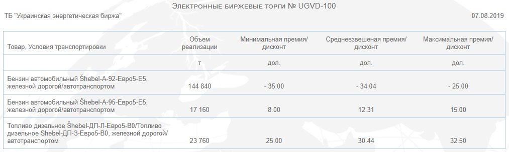 7 августа на площадке «Украинской энергетической биржи» УГД реализовала годовой объем бензинов и дизтоплива производства Šhebel.