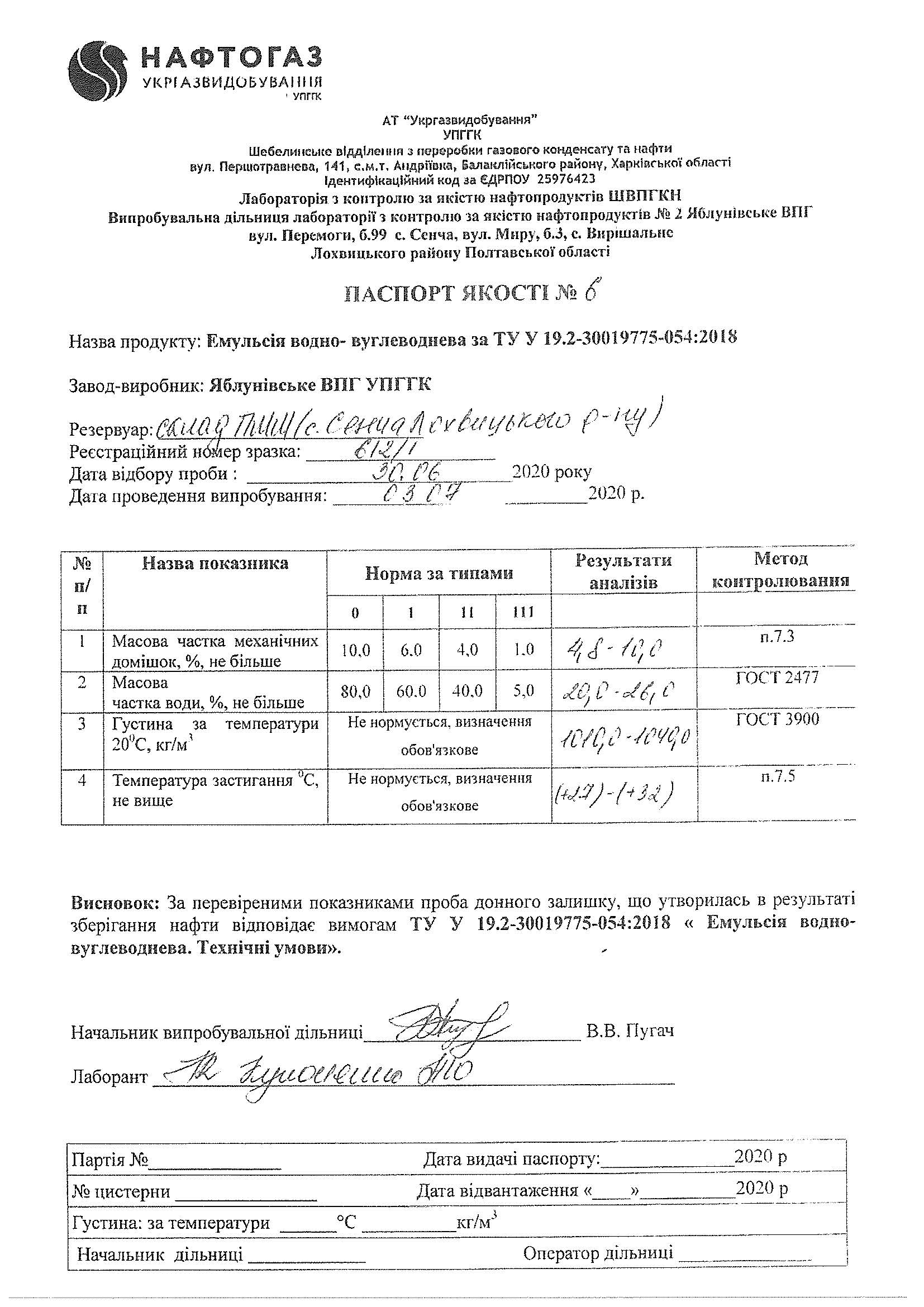 Водно-углеводородная эмульсия – маслянистая жидкость тёмного цвета с запахом нефтепродуктов, которая состоит из парафиновых, смолистых, а также асфальтеновых ароматических углеводородов, которая образовывается по факту очистки резервуаров либо других технологических объектов переработки нефти и газового конденсата.