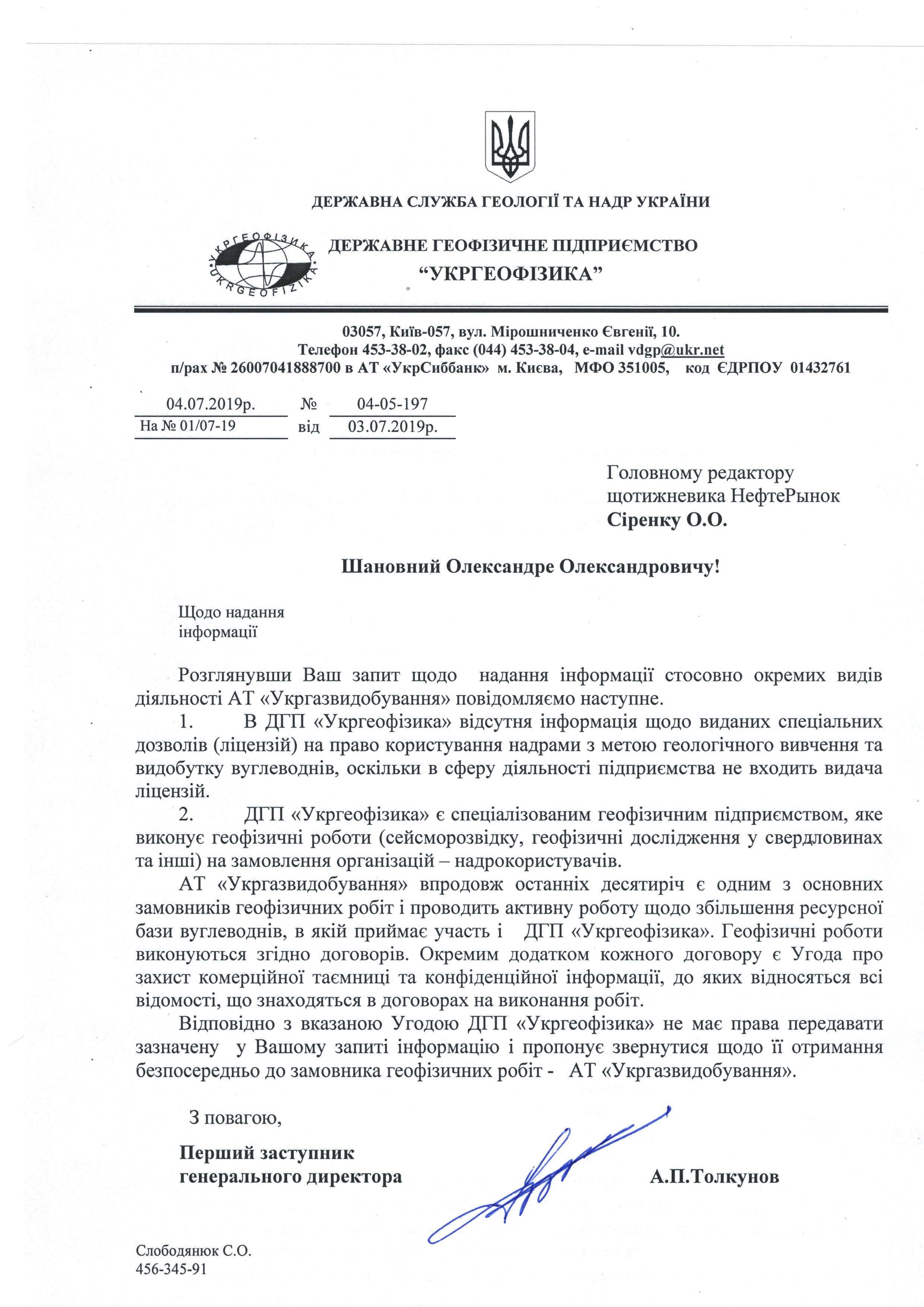 В свою очередь, в ГГП «Укргеофизика» отказались отвечать на данный запрос отметив, что с АО «Укргаздобыча» у них коммерческие отношения и они не могут раскрывать коммерческие тайны своего клиента.