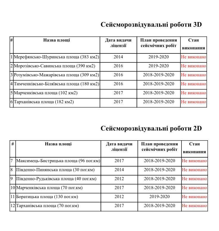 Тем не менее, в «Укргаздобыче» отказались отвечать на запрос в части отдельных месторождений и площадей, а именно о проведении геологических исследований 2D/3D на 12 месторождениях, лицензии на геологическое исследование и разработку которых компания получила в период 2012-1017 гг.