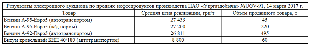 По результатам торгов было реализовано 760 т бензинов класса Евро-5 производства Шебелинского ГПЗ и 60 т кровельного битума на общую сумму 21 млн грн.