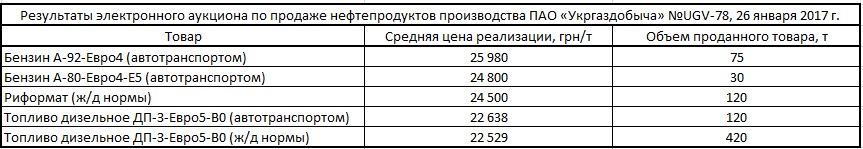 26 января ПАО «Укргаздобыча» провела нефтепродуктовый аукцион в торговой системе «Украинской Энергетической Биржи».