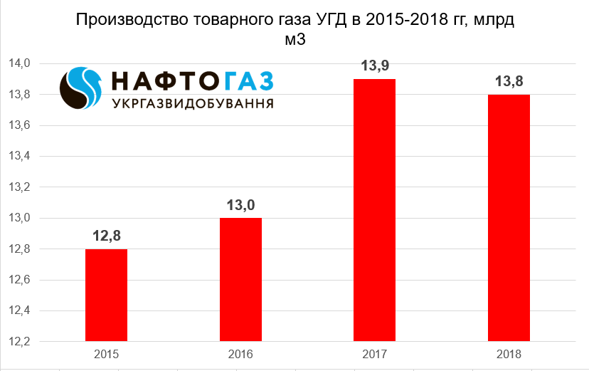 Согласно релизу «Нафтогаза», суммарный «объем добычи «Укргаздобычи» в 2018 году увеличился на 250 млн м3 (1,6%) по сравнению с 2017 годом, а с момента начала трансформации УГД в 2015 году годовой прирост составляет 970 млн куб. м3 (+6.7%).