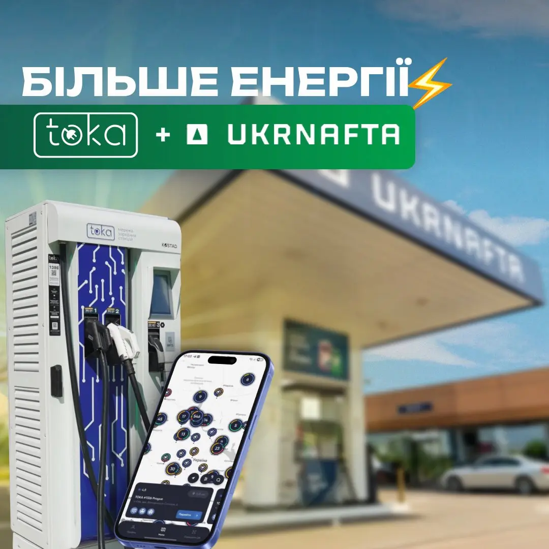 TOKA та «Укрнафта» відкрили першу спільну зарядну станцію для електромобілів на заправці у Хмельницькому. Про це TOKA повідомила на сторінці у FaceBook.