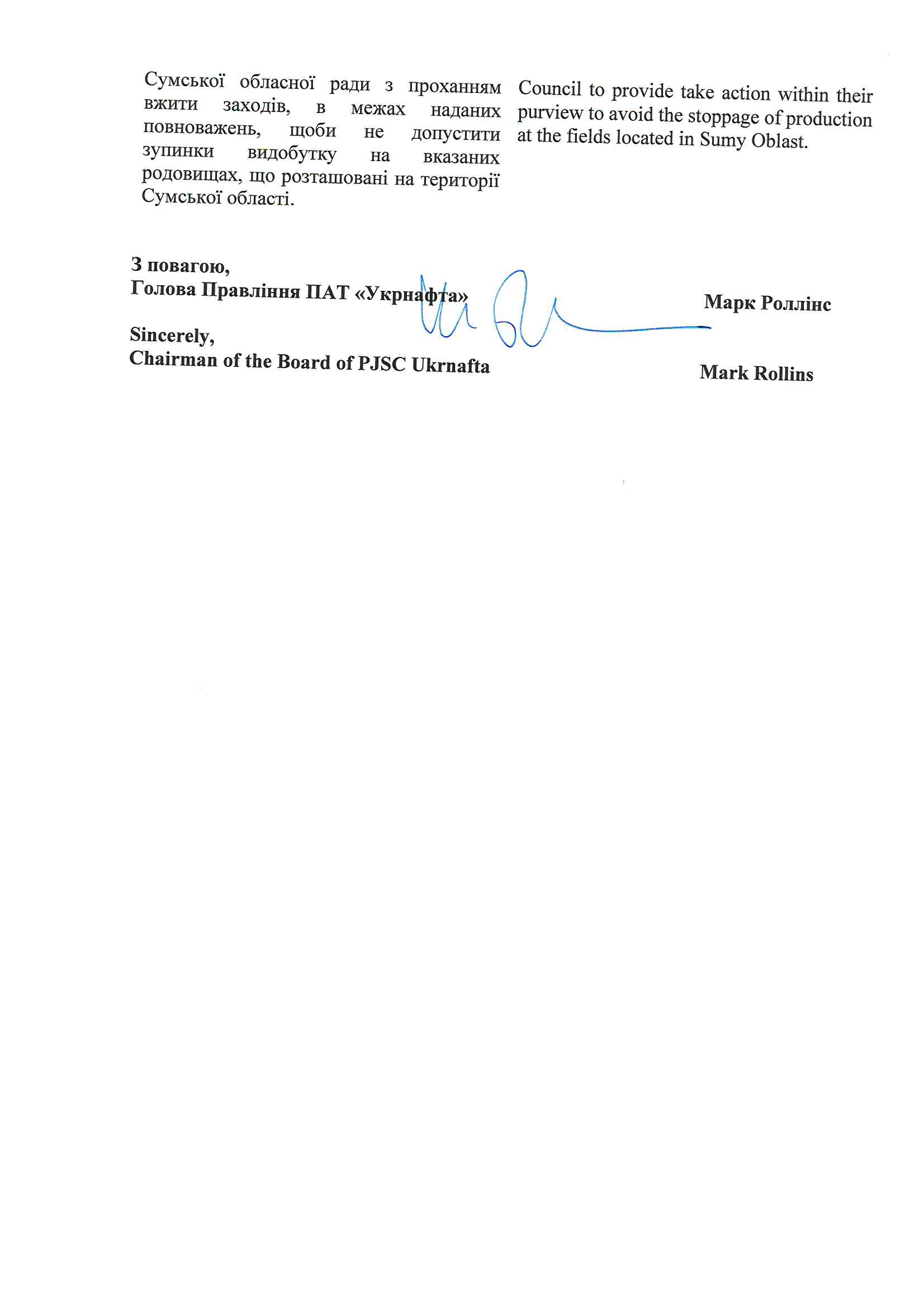 ПАО «Укрнафта» обратилось к главе Сумской ОГА, с просьбой в рамках полномочий главы администрации, не допустить остановки на шести месторождениях общества, на которых в скором времени должен закончится срок действия специальных разрешений на добычу.
