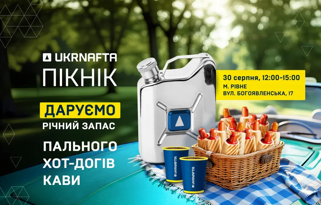 30 серпня компанія мережа Ukrnafta проведе літній пікнік на своєму автозаправному комплексі у Рівному за адресою вул. Богоявленська, 17. Захід розпочнеться о 12:00 та передбачає низку активностей для відвідувачів.