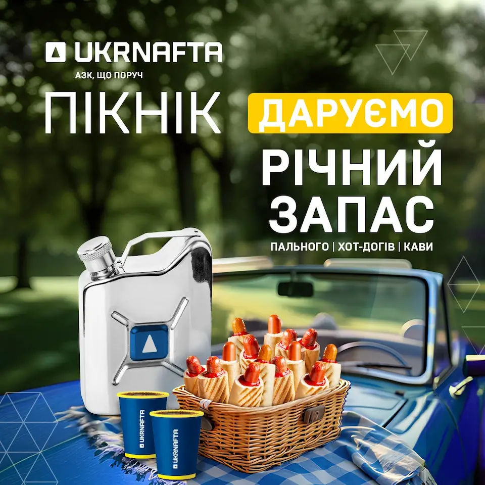 Розіграш подарунків відбудеться 24 травня під час святкового пікніка на заправці Ukrnafta за адресою: проспект Оболонський, 1А. Серед подарунків — сертифікати на 100, 200 та 300 літрів пального, 100 горняток кави та 100 хот-догів.