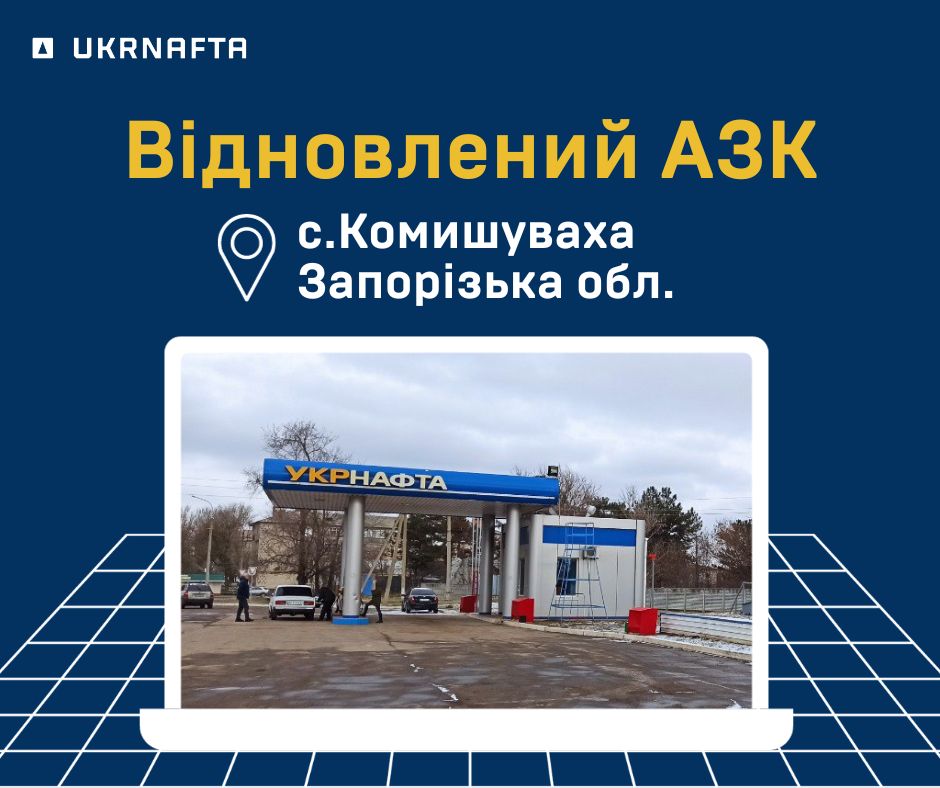 «На сьогоднішній день, задля комфорту та безпеки клієнтів, на АЗК відновлено електропостачання, зроблено косметичний ремонт будівлі, відремонтоване пошкоджене обладнання. Місцеві жителі та військові вже мають змогу заправити автівки та генератори», – йдеться у дописі «Укрнафти».