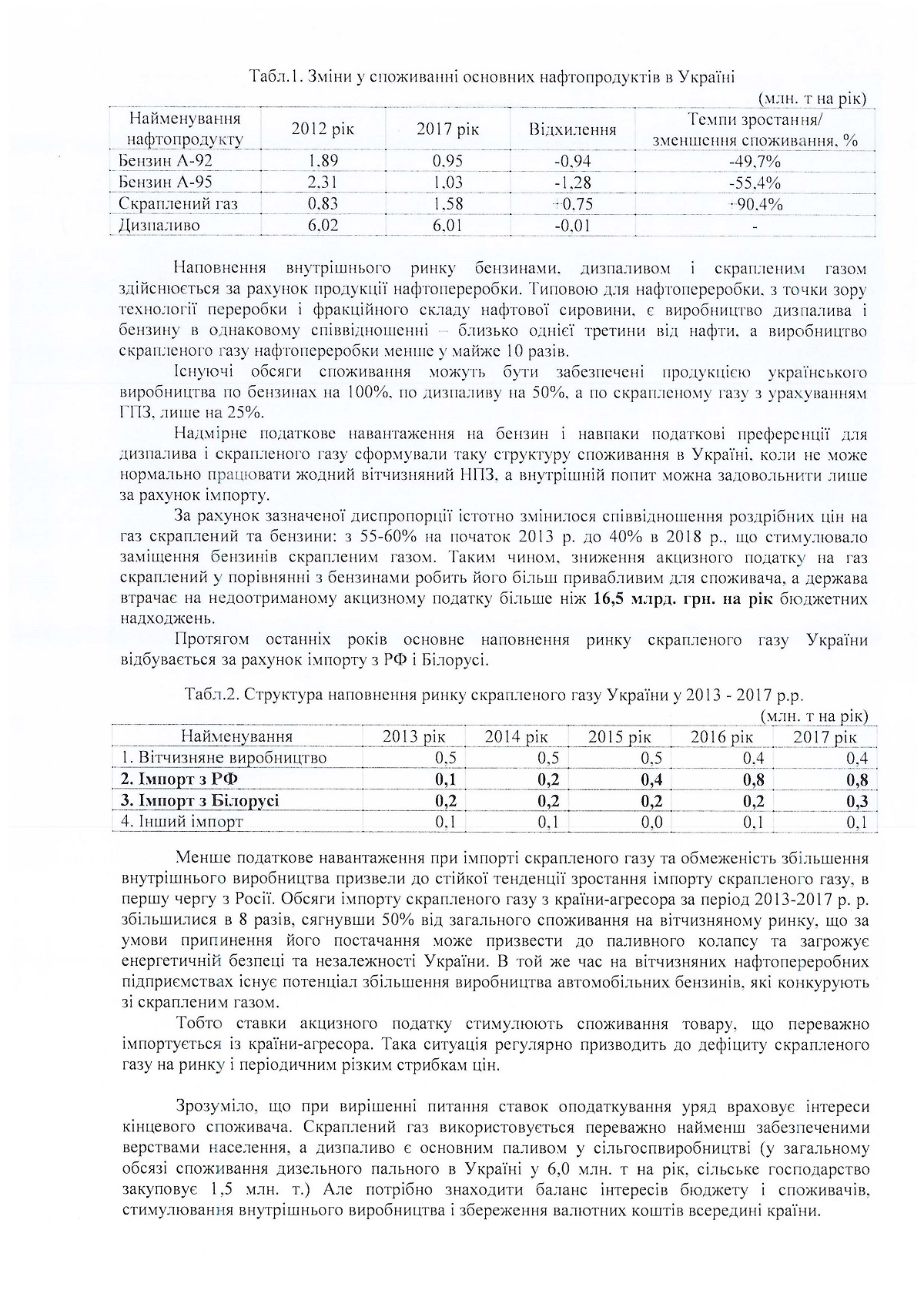 «Укртатнафтой» предлагается выровнять ставки акцизного налога для бензинов и дизельного топлива на уровне €164 /тыс. л и рассмотреть установление ставки налога на сжиженный газ в 2 раза меньше, чем на бензин до € 87/тыс. л.