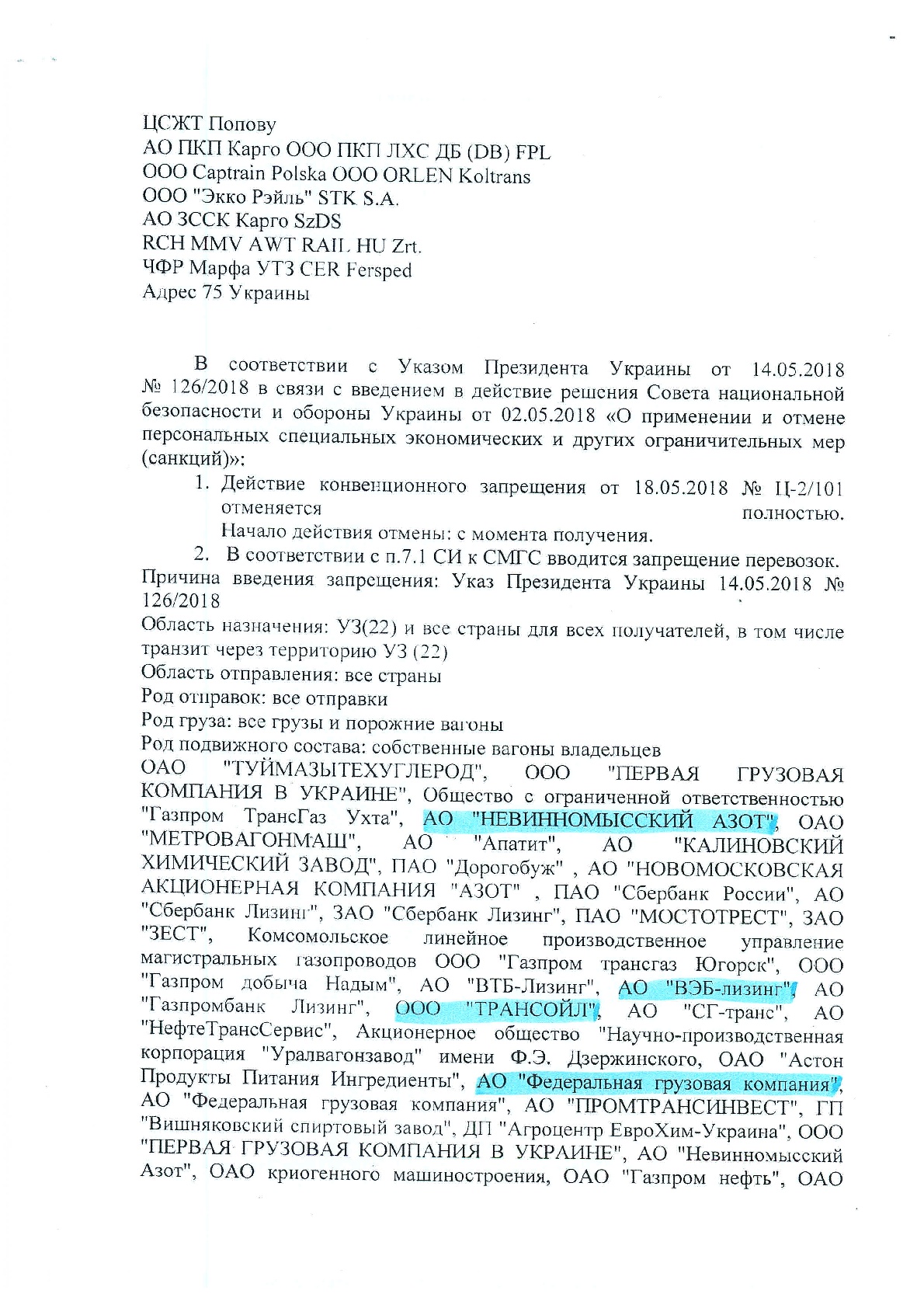 «Укрзализныця» не пропускает цистерны с сжиженным газом «Роснефти» в Украину, в связи с решением совета Национальной безопасности и обороны Украины от 2 мая 2018 года, о введении новых и продлении старых санкций против российских юридических и физических лиц.
