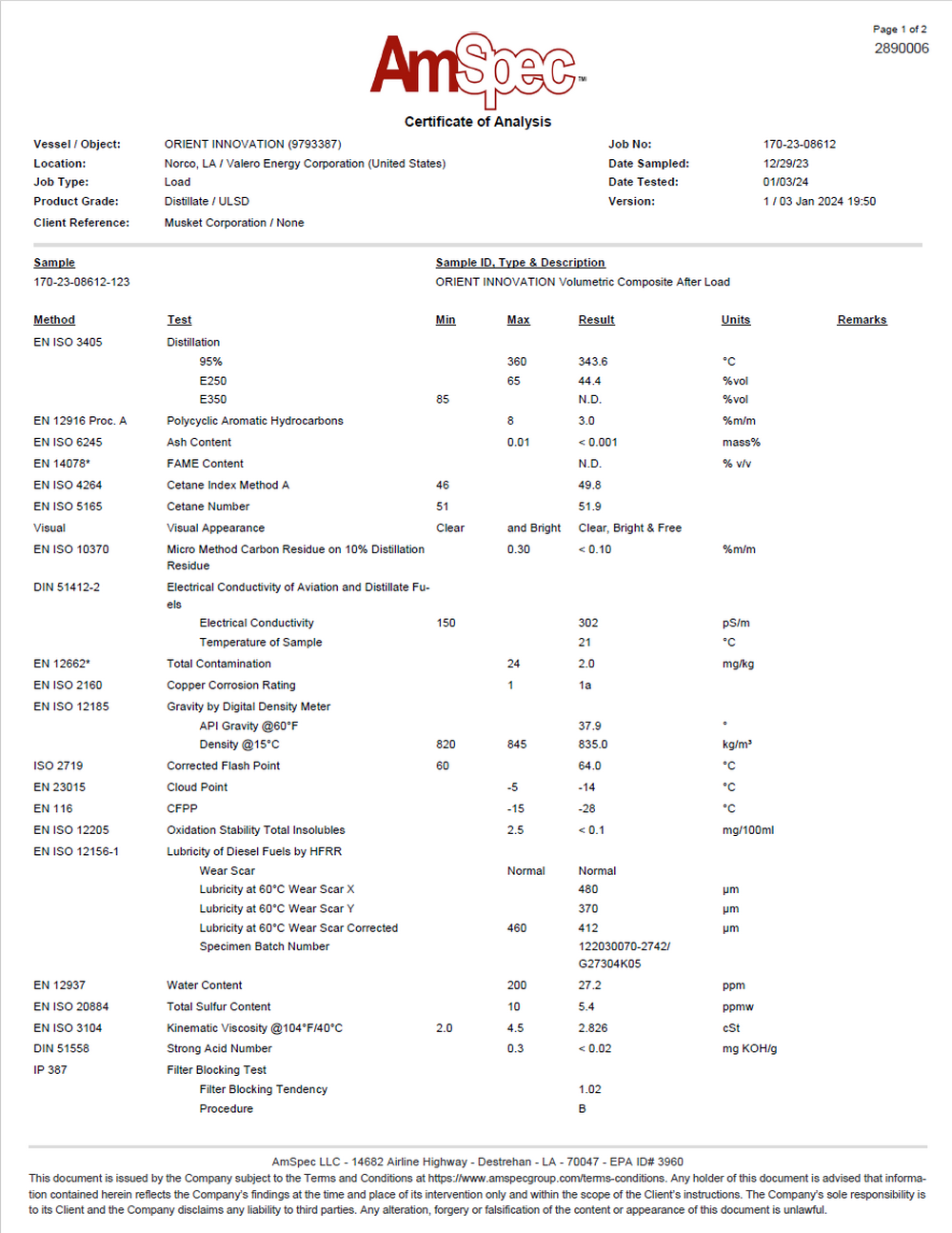 Американське дизпальне відповідає європейському стандарту Євро-5. Так за даними випробувань міжнародної лабораторії AmSpec вміст сірки становить 5,4 мг/м3 (при нормі до 10 мг/м3) та ДП витримує температуру до -28о.