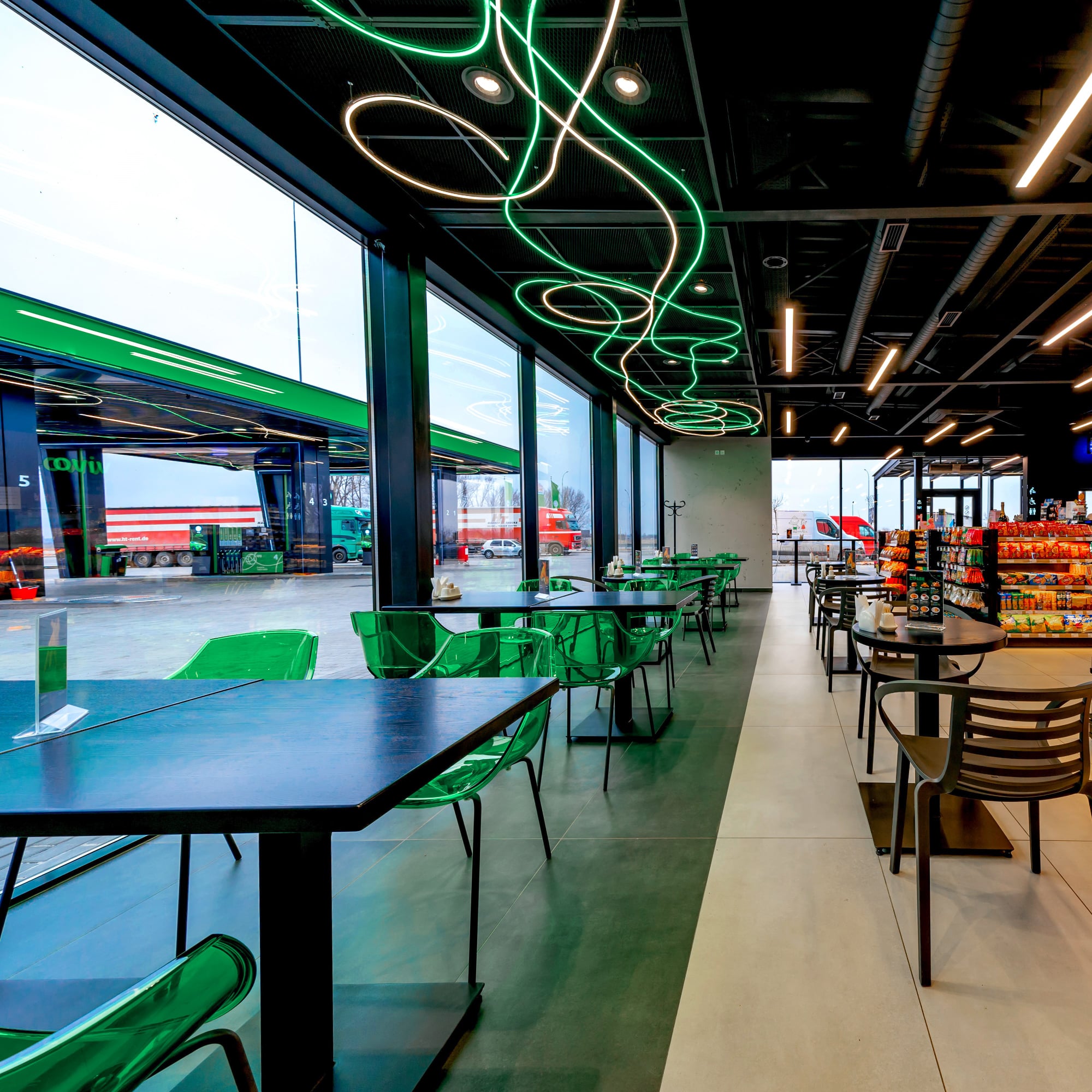 Площадь строений составляет 511 м кв. На станции продаются бензины А-92, А-95, А-98, дизельное топливо и ДТ Евро, LPG. Топливо отпускают шесть ТРК три из которых комбинированные с возможностью выдачи жидкого моторного топлива и пропан бутана.
