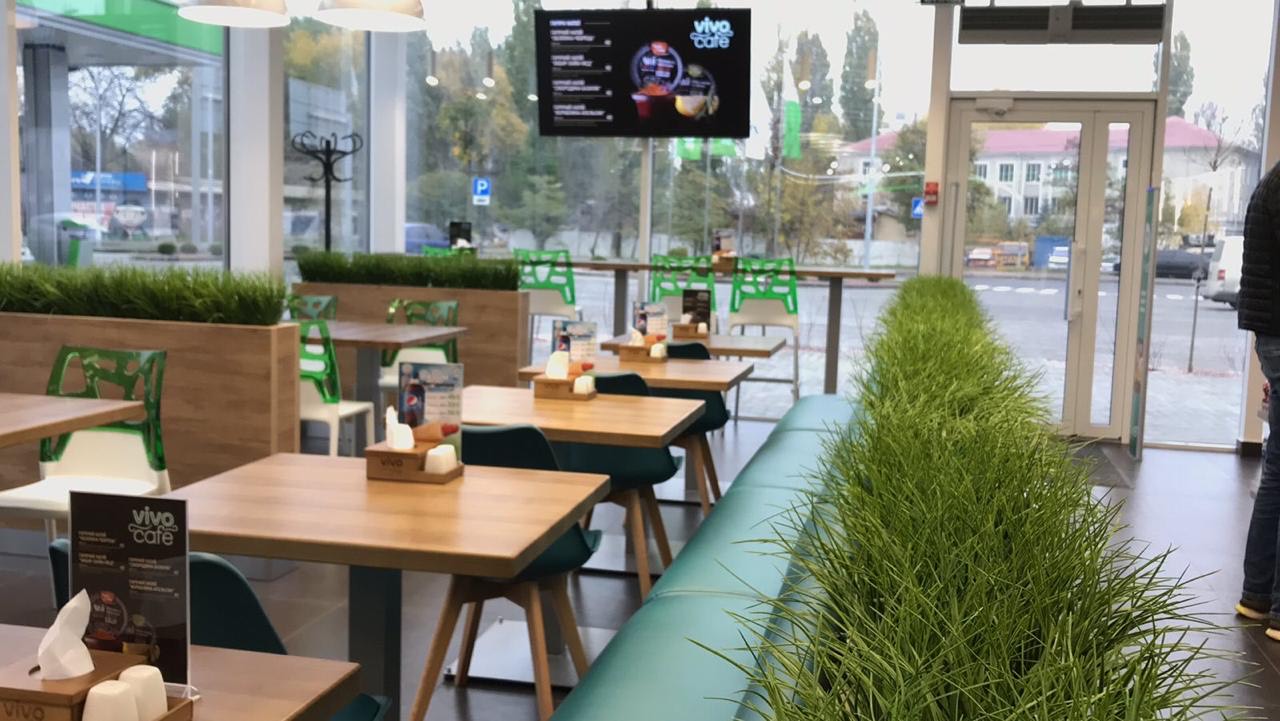 На станции есть Vivo Café c широким ассортиментом фаст-фуда и кофе.