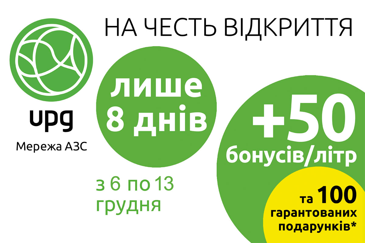 Территория АЗК включает минимаркет, Vivo Cafe. На АЗС можно получить свободный wi-fi. По случаю открытия - акция для всех водителей: «+50 бонусов за каждый литр заправленного топлива на бонусную карточку UPGood и гарантированные подарки первым 100 клиентам». Акция действует с 6 по 13 декабря 2016 включительно на АЗК UPG по адресу Киевская обл., Киево-Святошинский р-н, территория Дмитровского с / с, с. Мыла.