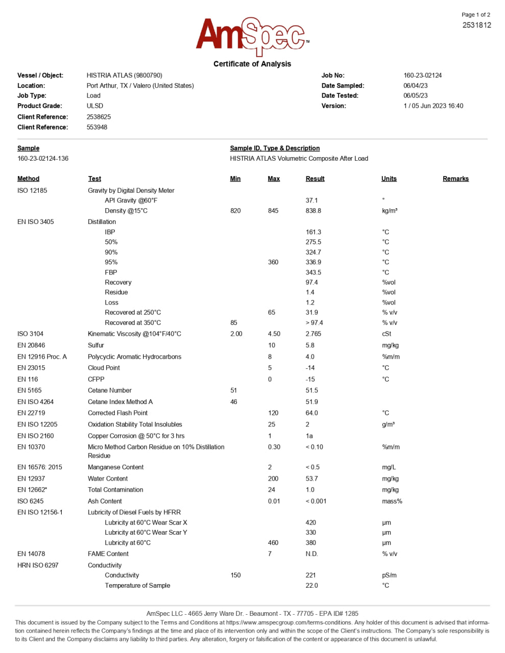 Американське дизпальне потрапило до Європи через порти Амстердаму, а далі через польський термінал у Свіноуйсьце (власник Baltchem, частку якої придбала UPG влітку 2022 р.) до кордону України. Протягом липня ресурс буде доставлено на 83 АЗС UPG.