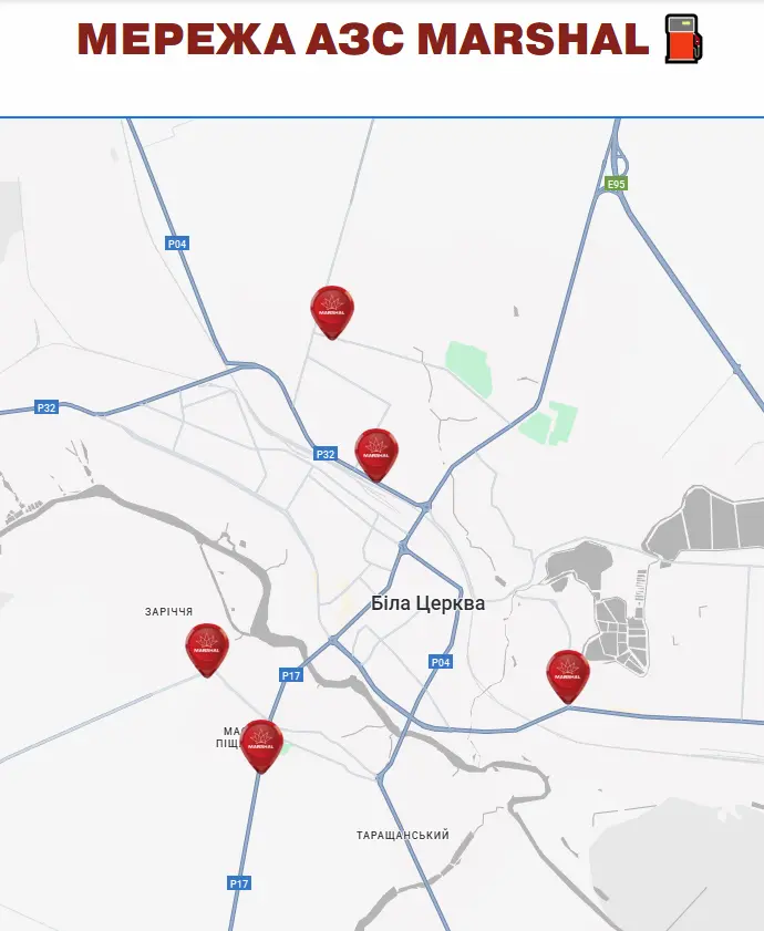 В Білій Церкві у Marshal зараз є 5 діючих АЗС, свідчать дані на сайті компанії. Отже, мережа готується до запуску 6 заправки в цьому місті.