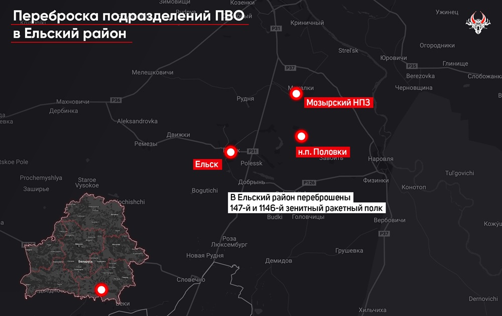 За інформацією «Гаюна», минулого тижня в Єльський район були перекинуті підрозділи військ ППО ЗС РБ: 1146-й зенітний ракетний полк, на озброєнні якого — п'ять батарей ЗРК «Тор-М2К», а також 147-й зенітний ракетний полк, на озброєнні якого — ЗРК «Оса-АКМ». Військових розмістили як у самому Єльську, так і в околицях н. п. Половки, яке розташоване за 3 км від Мозирського нафтопереробного заводу.