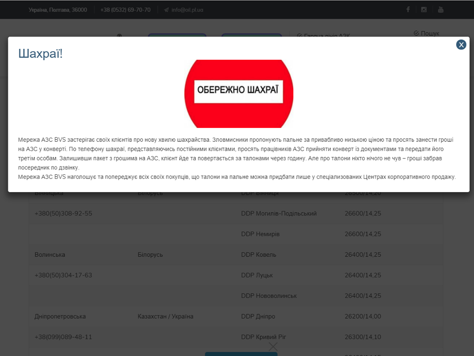 В сети АЗС BVS предупреждают своих клиентов о попытках мошенничества. Об этом сообщили в пресс-службе компании.