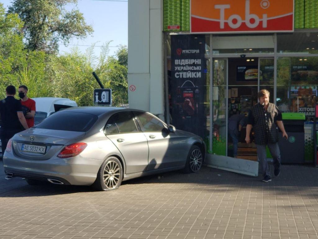 Сегодня, 7 августа, на Набережной Победы, автомобиль Mercedes врезался в здание автозаправки ОККО. Об этом сообщили в Dnepr.Info.