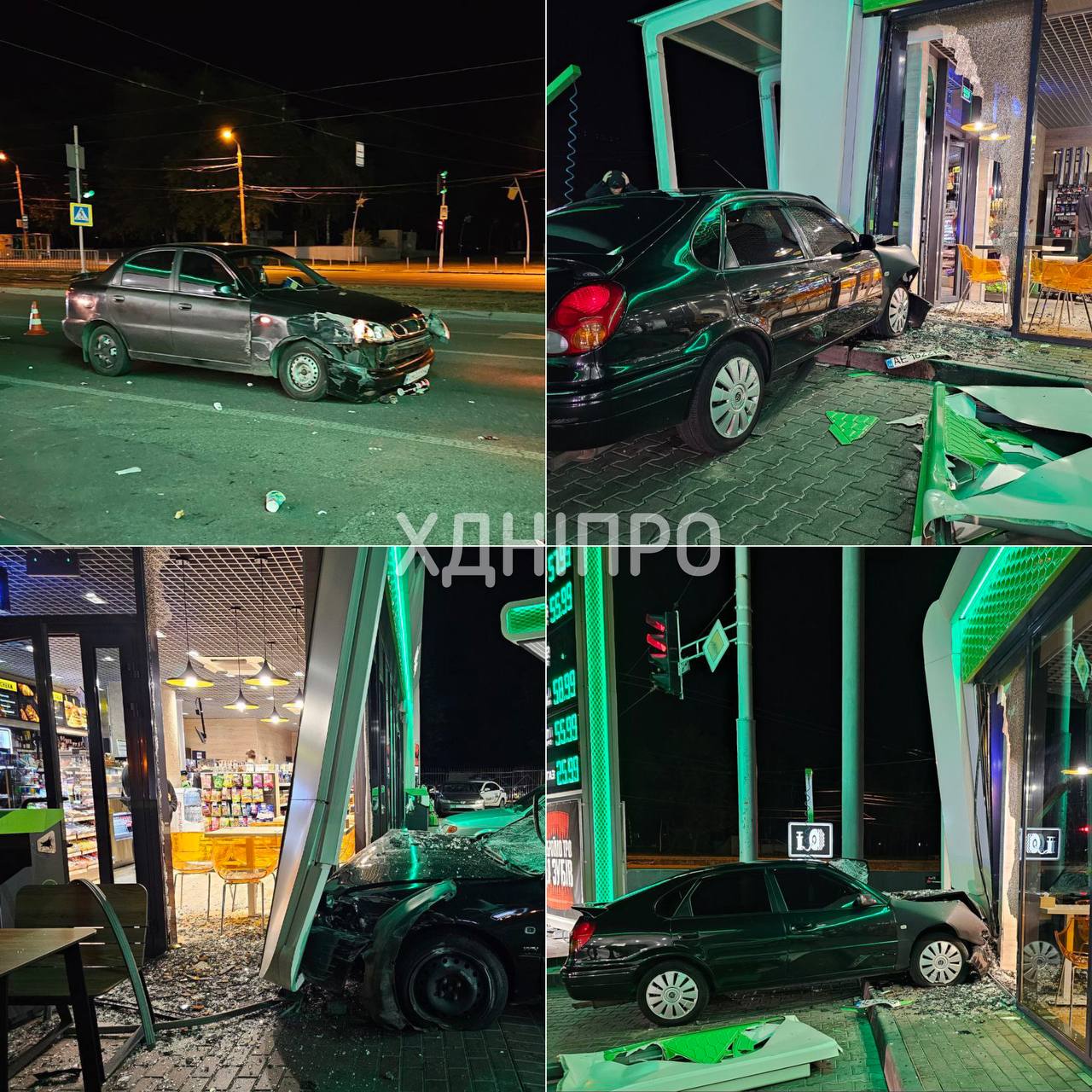 У суботу, 16 вересня, в Дніпрі сталася ДТП за участю трьох автомобілів, один з яких врізався у вітрину АЗС OKKO. Про це повідомляють місцеві ЗМІ.