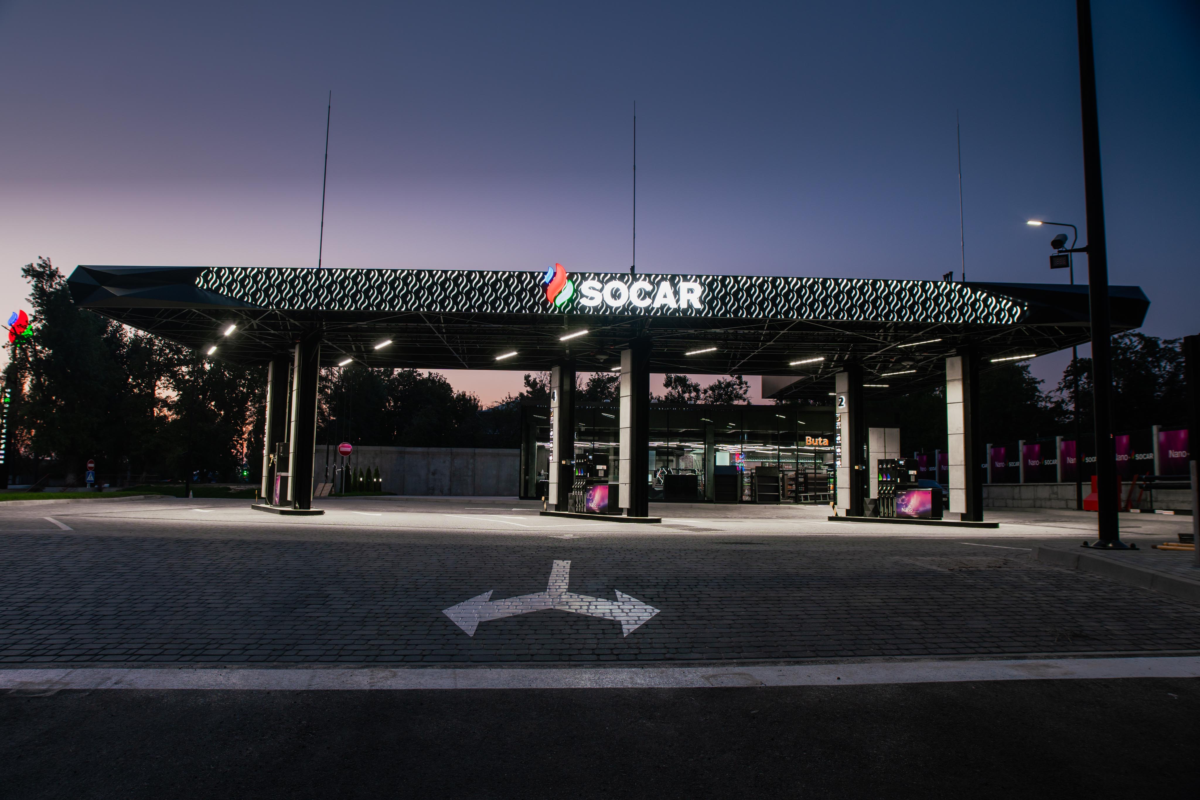 Дизайн нового АЗК выполнен в традиционном для SOCAR hi-tech стиле. Он сочетает полигональные поверхности в интерьере, дизайнерскую мебель с характерным минимализмом. Еще одна отличительная черта АЗК SOCAR — светодиодные экраны с высоким разрешением, которыми оснащены ценовая стела и колонны.