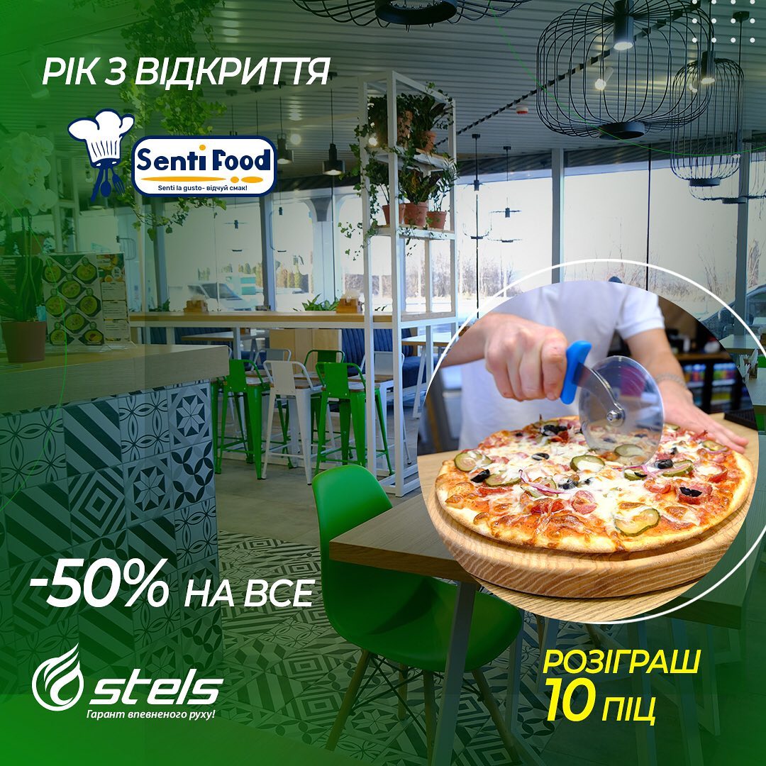 «Празднуем год в честь открытия кафе Senti в Недобоивцах. Не оставим вас без подарков. Дарим 50% скидки на все меню (кроме напитков)», - говорится в сообщении.