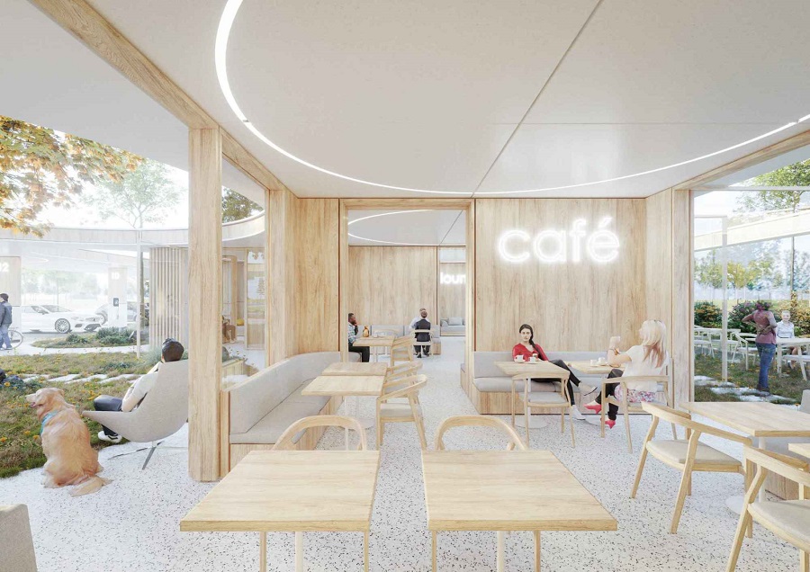 Как отмечают организаторы, электромобилям сейчас нужно как минимум 20-30 мин или даже больше, чтобы зарядиться, поэтому возникает вопрос, как должна выглядеть зарядная станция, где водителям и пассажирам будет комфортно проводить время.