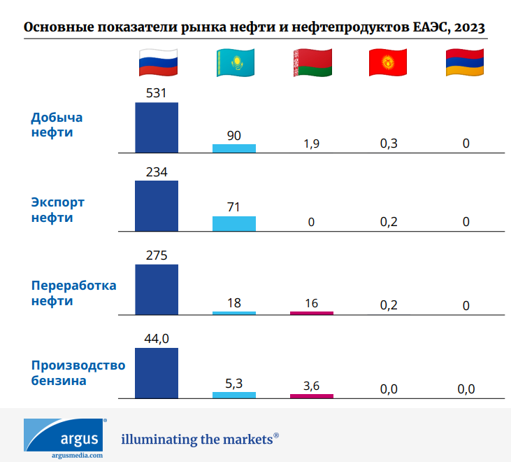 В Argus вважають, що Казахстан має великий потенціал для участі в регіональній торгівлі нафтопродуктами, і створення єдиного ринку ЄАЕС тільки б сприяло реалізації цього потенціалу, але через низку чинників цей потенціал не використовується повною мірою, а запуск спільного ринку поки що відкладається.