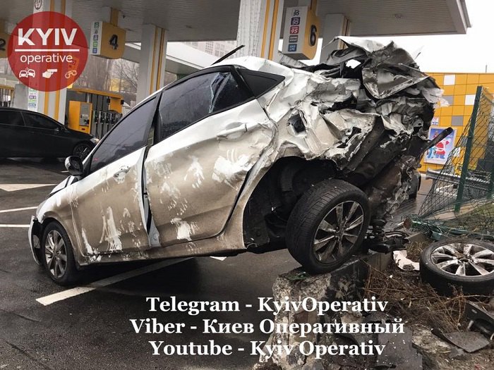 «Авария произошла утром на перекрестке Полярной и Семьи Кульженко. По предварительной информации, водитель грузовика Renault, который ехал из города Сумы и вез муку, уснул за рулем. На перекрестке он въехал в Mitsubishi, а затем начал сносить все на своем пути - мусорные баки, столб, забор. Въехал на стоянку АЗС KLO, где водитель Hyundai как раз остановился, чтобы купить кофе. В шоковом состоянии он рассказал, что увидел, что на него несется неуправляемая фура и он еле успел отпрыгнуть», - говорится в сообщении.