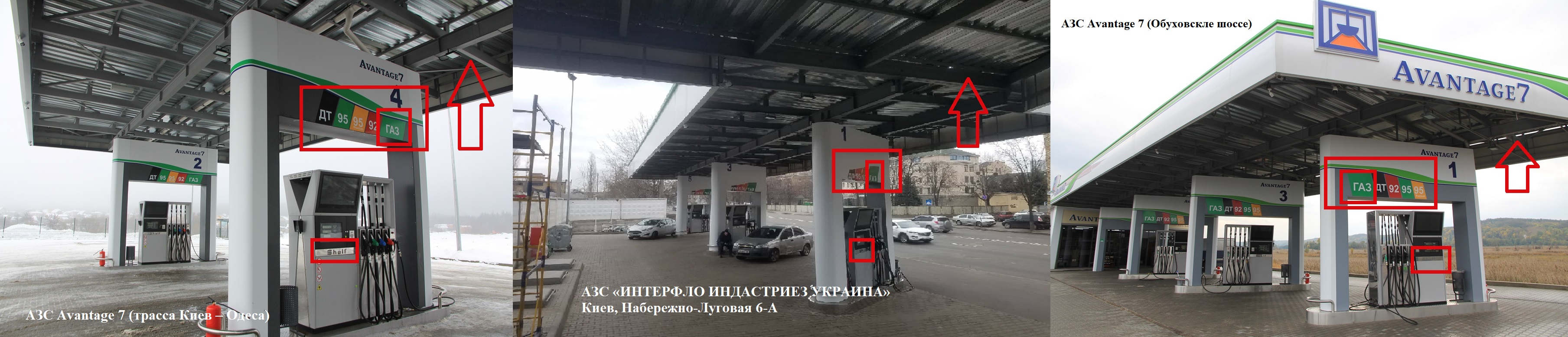 Внешнее оформление станций почти полностью копирует формат новых АЗС Avantage 7 в Киеве и столичном регионе: цвета, оформление, информация на постах, навес, фриз, производитель ТРК. Исключение - это вывеска с логотипом бренда АЗС. Кроме того, на станции сделали упор на реализацию сжиженного газа: установлены мультитопливные колонки, как в сети «Авантаж7».