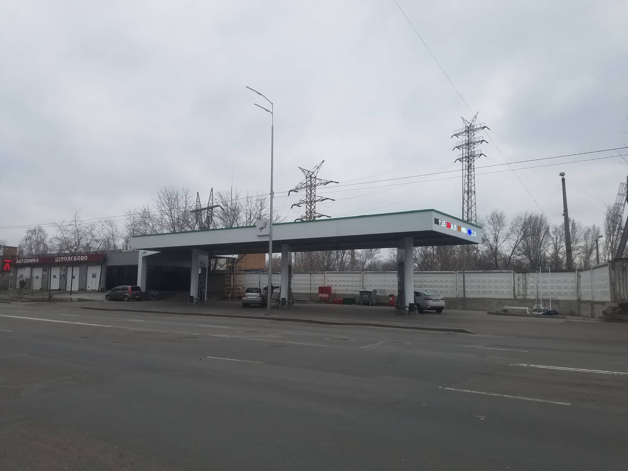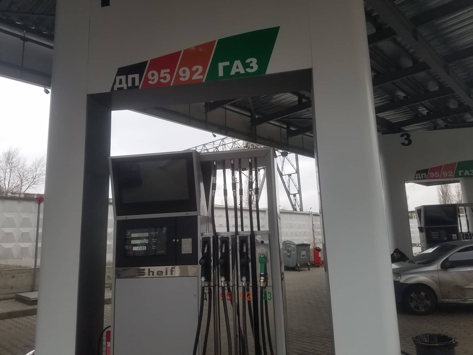 Заправка оборудована тремя двусторонними мультимедийными ТРК производства компании Shelf, что отпускают бензин А-92, А-95, ДТ, LPG белорусского производства по ценам 23,95 грн/л, 24,95 грн/л, 23,95 грн/л и 11,65 грн/л, соответсвенно. Отметим, что станция имеет необычное расположение из-за ограничения примыкающей промзоны, отделенной забором.