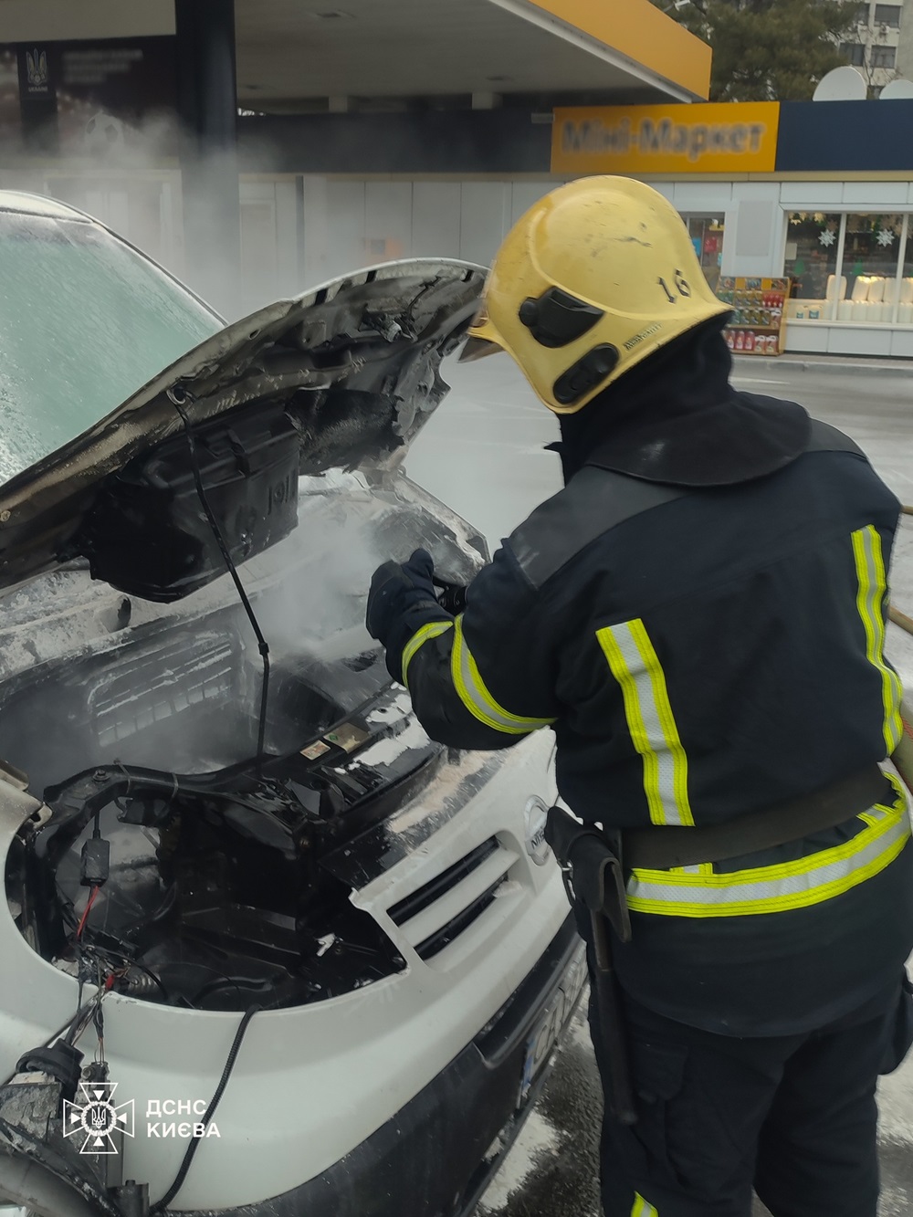 «6 січня о 9:23 до рятувальників надійшло повідомлено про пожежу на проспекті Леоніда Каденюка, що у Деснянському районі міста. Вогнеборці встановили, що сталося загоряння в моторному відсіку автомобіля Nissan, припаркованого на території однієї з АЗС», — йдеться у повідомленні.