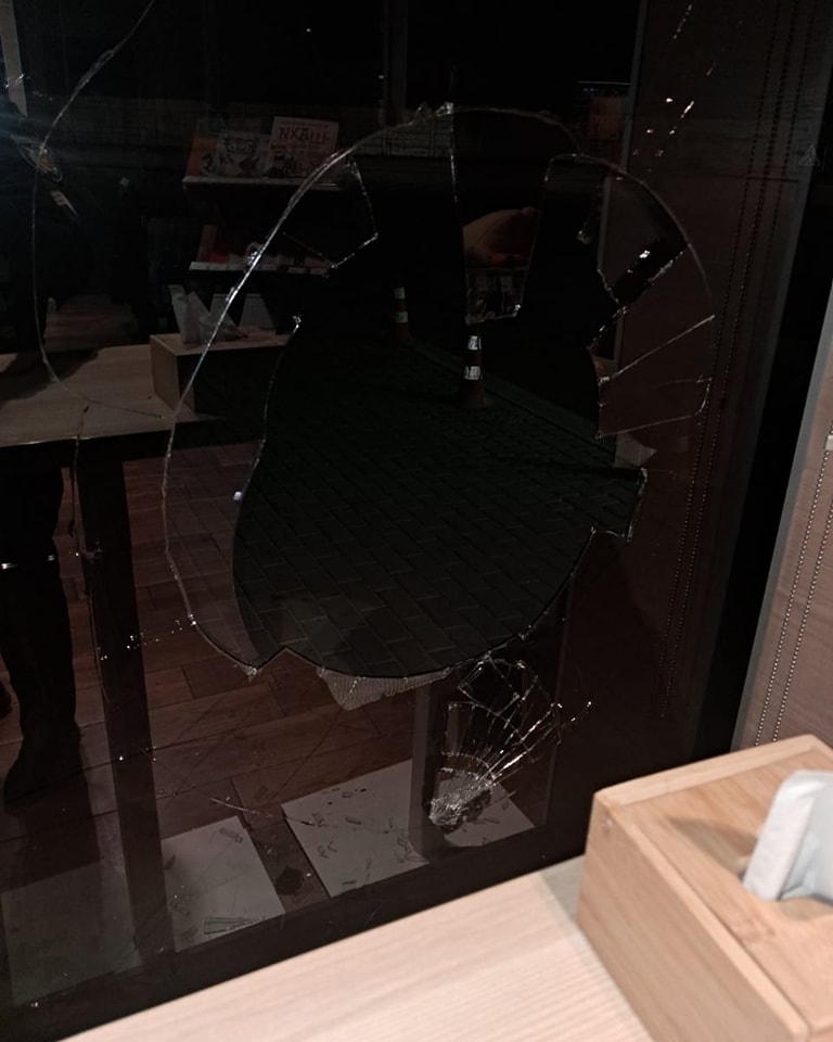 На місці події було затримано 34- річного мукачівця,який розбив бокову вітрину АЗС. На місце злочину викликано слідчо-оперативну групу для з'ясування всіх обставин правопорушення. Дії правопорушника кваліфікують ст.194 КК України.