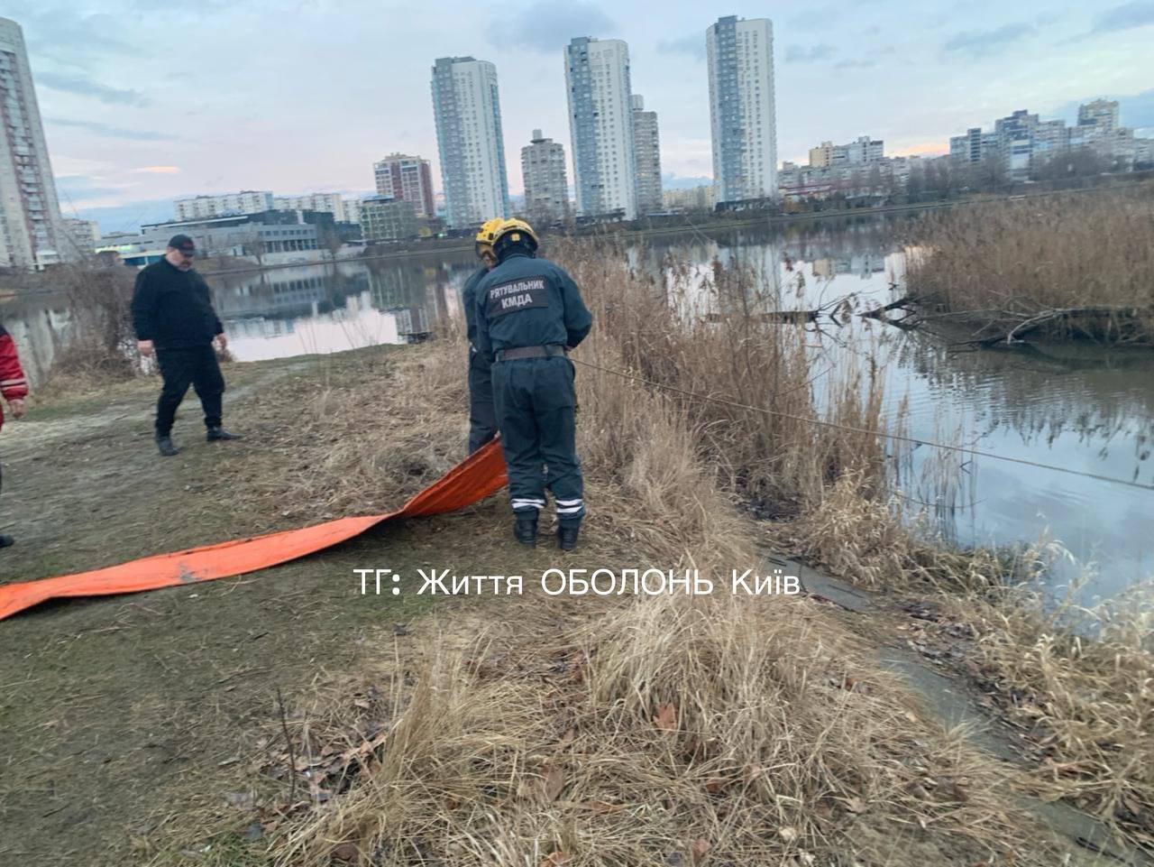 На місце події для з’ясування обставин прибули слідчо-оперативна група Оболонського управління поліції, прокурори Оболонської окружної прокуратури та працівники комунального підприємства, яке спеціалізується на охороні, утриманню та експлуатації земель водного фонду м. Києва, повідомив відділ комунікації поліції Києва.